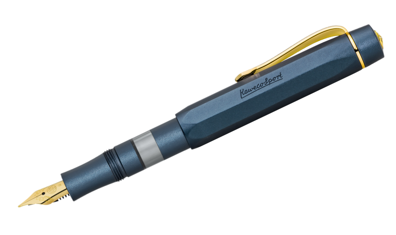 The fountain pen is available with a gold-plated steel nib in five nib widths, from extra-fine (EF) to extra-broad (BB). The 190 nib unit can also be easily replaced later. Presented in an elegant round tin with a classic Kaweco design, the Kaweco Piston Sport AL Navy makes an ideal gift for the Christmas season.