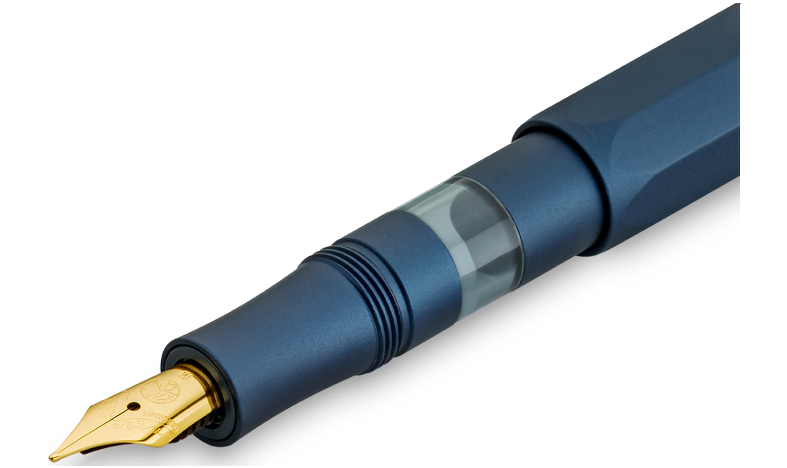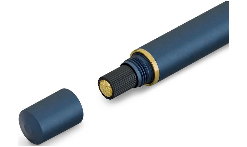 The Piston Sport AL series is getting a splash of colour: Just in time for winter, our metallic piston fountain pen is sporting a cool new look. The blue anodized finish of the robust aluminum barrel is extremely durable and gives the pen a premium feel. It harmonizes beautifully with the gold accents, lending the writing instrument a particularly elegant character. The perfect balance between weight and diameter of the piston fountain pen also ensures that your hand won't tire, even after extended writing sessions.